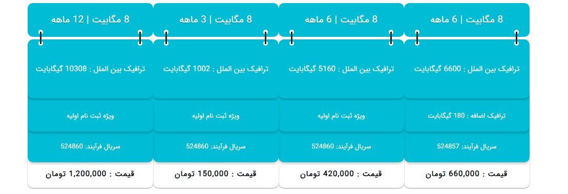 8مگ 6ماه 5000گیگ بین الملل+رانژه+10%مالیات 615 هزار تومان ۶۱۵,۰۰۰ تومان افزودن به سبد خرید ثبت نام اولیه